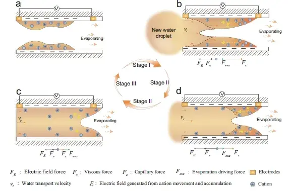 水伏效应(Hydrovoltaic Effect)是指雨滴、水波动、水蒸发等不同形态的水与纳米结构材料相互作用时,将蕴含的能量直接转化为电能的现象,这一发现拓展了传统动电效应理论